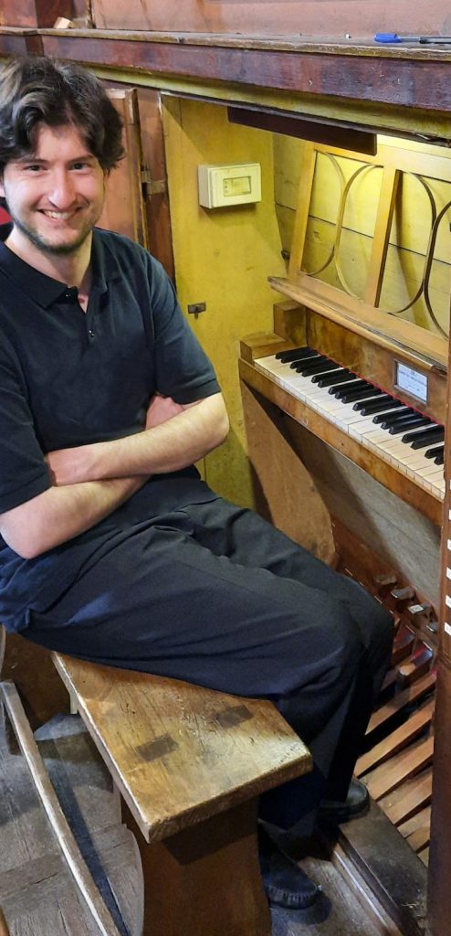 Fabio Frigato inizia lo studio del pianoforte all’età di 5 anni; sotto la guida di Gianluca Frau inizia a dedicarsi allo studio dell’organo in adolescenza spaziando dalla musica antica e rinascimentale, al romanticismo e fino alla musica attuale. Nel 2015 vince il secondo premio C. Abbado, a Perugia. Negli anni successivi frequenta masterclass di K. Schnorr, B. Haas, C. Mantoux, G. Bovet, M. Torrent, L. Lohmann, J. Essl, H. Deutsch, J. Laukvik, G.Gnann, E.C. Vianelli. Nel semestre invernale 2016/2017 frequenta il corso di organo nella classe del Prof. B. Haas presso la Hochschule für Musik und Theather München nell’ambito del progetto Erasmus+. Dopo aver conseguito il diploma accademico di primo livello in organo nel 2018 con il massimo dei voti e la lode nella classe di A. Falcioni e anche con U. Spanu presso il Conservatorio di Musica di Sassari “L. Canepa”, successivamente prosegue gli studi il a presso la “Hochschule für Musik und Theater München” con il Prof. B. Haas e nella classe di improvvisazione del Prof. C. Schönfelder,. Tiene concerti nelle cattedrali di Oristano, Alghero, Cagliari, Lucca. Nel 2022 debutta in Spagna con la Polifonica Algherese nello splendido Temple Expiatori de la Sagrada Família, a Barcellona, presentando uno spettacolo musicale basato su “Lo Senyal del Judici”, tradizione medievale che collega la Sardegna al mondo di lingua catalana con il Coro Polifonico Algherese diretto da U. Spanu. Nel 2023 torna a Barcellona a a. Maria de Gracia per replicare con grande successo lo spettacolo dopo una applaudita performance anche a Roma a S. Maria dell’orto. Dal 2014 collabora stabilmente con la Rassegna Internazionale Organistica del Festival del Mediterraneo, tenendo numerosi e frequenti concerti come solista. Nel 2021 suona come organista e continuista nell’Orchestra del Teatro Lirico di Cagliari, sotto la direzione di Arthur Fagen e Nicolas Altstaedt. Nel 2022 è invitato al “Toscana Organ Fest” di Cortona e nella rassegna “Musica in Cattedrale”, presso il Duomo di Lucca. Dal 2023 accompagna i cantanti Valentina Satta ed Ettore Ágati in una tournée basata sui duetti di C. Monteverdi e sul repertorio di musica antica per organo. Nel 2022 e nel 2024 suona con la corale Rossini il requiem di Fauré nelle cattedrali di Sassari e di Bosa e ha collaborato come continuista col Complesso vocale di Nuoro per la realizzazione di un concerto sulla produzione sacra di Monteverdi. Attualmente studia Clavicembalo nella classe del Prof. L. Feder presso il Conservatorio di Cagliari. Ha recentemente collaborato con “l’Orchestra Sinfonica di Milano G. Verdi” in qualità di organista sotto la direzione di A. Soddy. In aprile 2025 ha vinto il Primo Premio “Inzoli Bonizzi” al I Concorso Internazionale “Vincenzo Iannucci”. Dal dicembre 2023 é organista della Cattedrale di Oristano